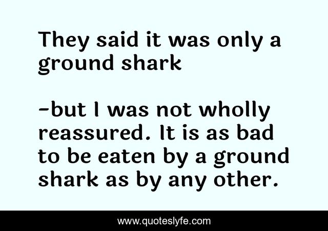 "but I was not wholly reassured. It is as bad to be eaten by a ground shark as by any other. Quotes." Quoteslyfe.com, 2025. Mon. 08 Dec. 2025. <https://www.quoteslyfe.com/quote/They-said-it-was-only-a-ground-217085>.
