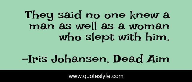 This page presents the quote "They said no one knew a man as well as a woman who slept with him.". Author of this quote is Iris Johansen, Dead Aim. This quote is about life, love, affection, understanding,.