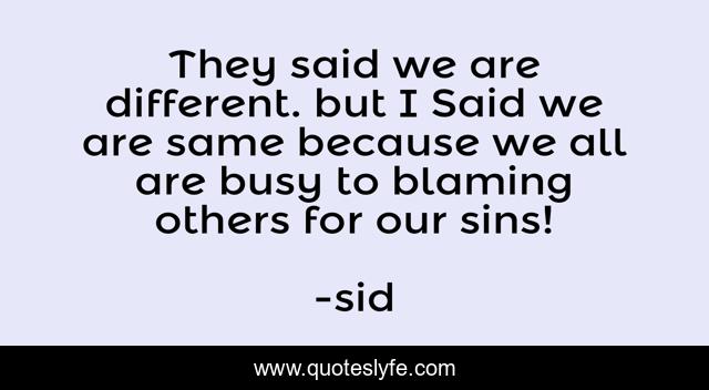 This page presents the quote "They said we are different. but I Said we are same because we all are busy to blaming others for our sins!". Author of this quote is sid. This quote is about facts, facts-of-life, sins, experience, reality,.