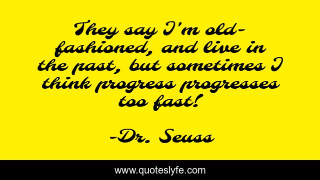 This page presents the quote "They say I'm old-fashioned, and live in the past, but sometimes I think progress progresses too fast!". Author of this quote is Dr. Seuss. This quote is about life, time,.
