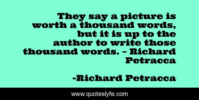 This page presents the quote "They say a picture is worth a thousand words, but it is up to the author to write those thousand words. – Richard Petracca". Author of this quote is Richard Petracca. .