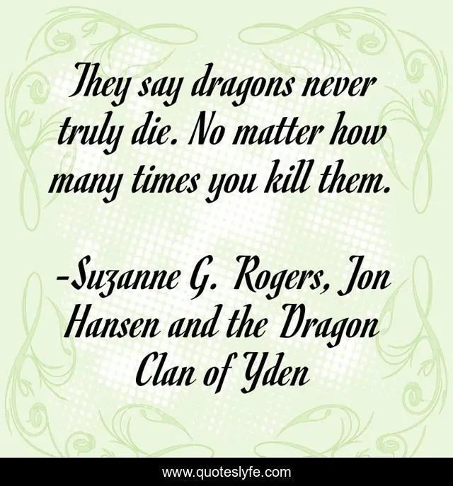 "Suzanne G. Rogers, Jon Hansen and the Dragon Clan of Yden Quotes." Quoteslyfe.com, 2025. Sun. 07 Dec. 2025. <https://www.quoteslyfe.com/quote/They-say-dragons-never-truly-die-No-229624>.