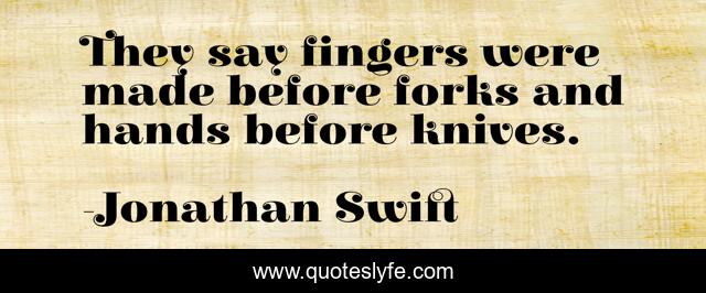 This page presents the quote "They say fingers were made before forks and hands before knives.". Author of this quote is Jonathan Swift. .