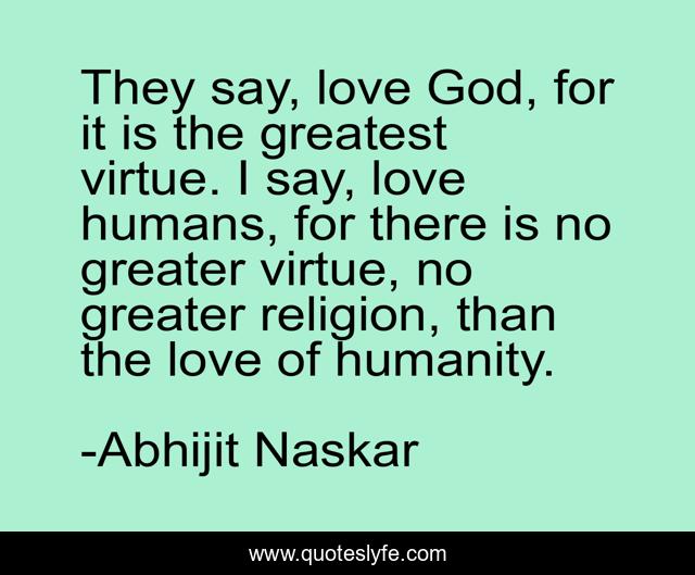 They say, love God, for it is the greatest virtue. I say, love humans, for there is no greater virtue, no greater religion, than the love of humanity.