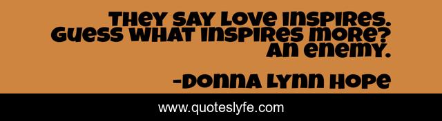 This page presents the quote "They say love inspires. Guess what inspires more? An enemy.". Author of this quote is Donna Lynn Hope. This quote is about enemy, inspire, enemies, adversary, inspires, inspiration,.