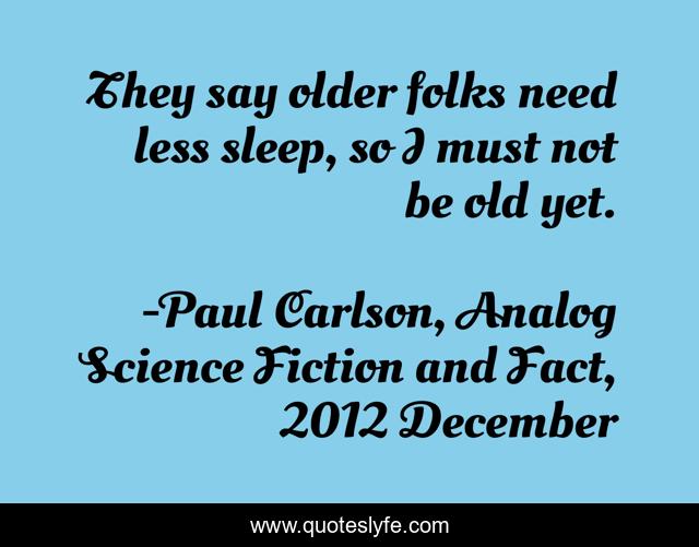 "Paul Carlson, Analog Science Fiction and Fact, 2012 December Quotes." Quoteslyfe.com, 2025. Fri. 05 Dec. 2025. <https://www.quoteslyfe.com/quote/They-say-older-folks-need-less-sleep-224229>.