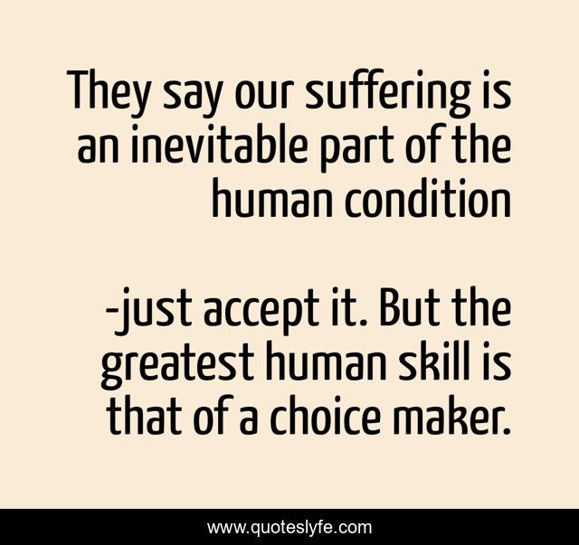 "just accept it. But the greatest human skill is that of a choice maker. Quotes." Quoteslyfe.com, 2025. Sat. 06 Dec. 2025. <https://www.quoteslyfe.com/quote/They-say-our-suffering-is-an-inevitable-143821>.