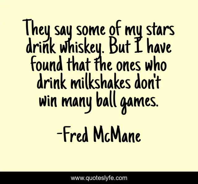This page presents the quote "They say some of my stars drink whiskey. But I have found that the ones who drink milkshakes don't win many ball games.". Author of this quote is Fred McMane. This quote is about drinking, baseball,.
