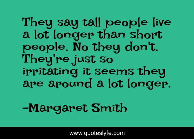 "Margaret Smith Quotes." Quoteslyfe.com, 2025. Sun. 07 Dec. 2025. <https://www.quoteslyfe.com/quote/They-say-tall-people-live-a-lot-270072>.