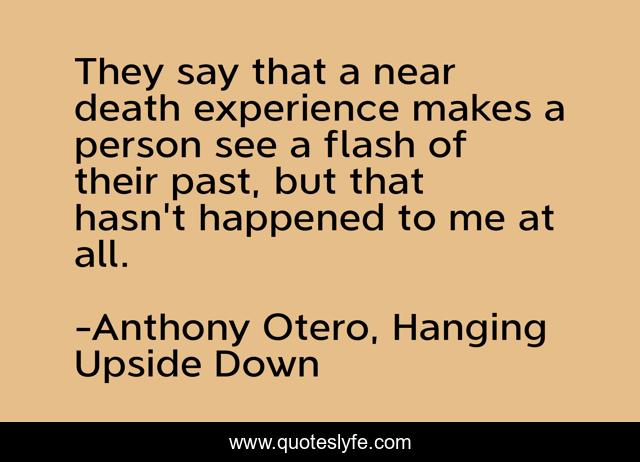 This page presents the quote "They say that a near death experience makes a person see a flash of their past, but that hasn't happened to me at all.". Author of this quote is Anthony Otero, Hanging Upside Down. .