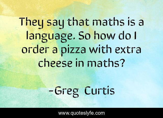 This page presents the quote "They say that maths is a language. So how do I order a pizza with extra cheese in maths?". Author of this quote is Greg Curtis. This quote is about maths, humour, language,.