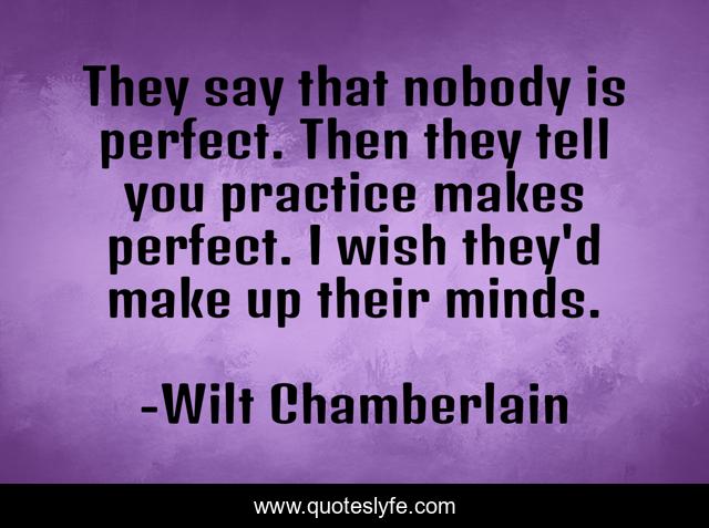 This page presents the quote "They say that nobody is perfect. Then they tell you practice makes perfect. I wish they'd make up their minds.". Author of this quote is Wilt Chamberlain. This quote is about basketball, sports,.