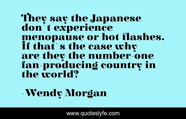 This page presents the quote "They say the Japanese don't experience menopause or hot flashes. If that's the case why are they the number-one fan-producing country in the world?". Author of this quote is Wendy Morgan. .