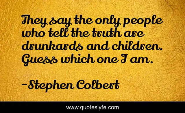This page presents the quote "They say the only people who tell the truth are drunkards and children. Guess which one I am.". Author of this quote is Stephen Colbert. .