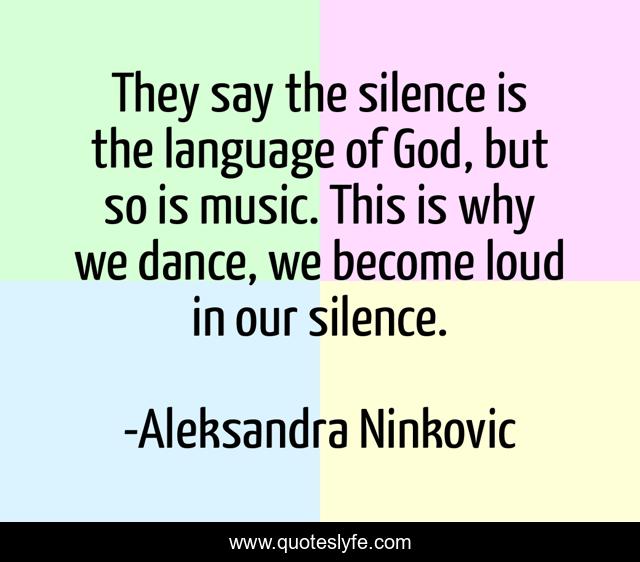 This page presents the quote "They say the silence is the language of God, but so is music. This is why we dance, we become loud in our silence.". Author of this quote is Aleksandra Ninkovic. This quote is about silence-speaks, dance, god, geometry, dancer, music, silence, movement,.