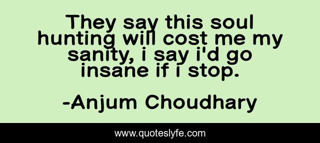 "Anjum Choudhary Quotes." Quoteslyfe.com, 2025. Tue. 09 Dec. 2025. <https://www.quoteslyfe.com/quote/They-say-this-soul-hunting-will-cost-63803>.