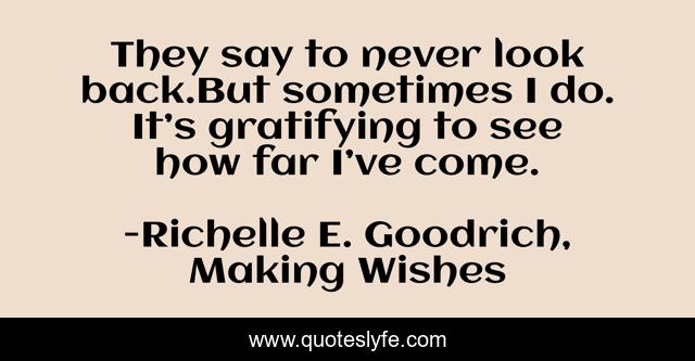 This page presents the quote "They say to never look back.But sometimes I do. It’s gratifying to see how far I’ve come.". Author of this quote is Richelle E. Goodrich, Making Wishes. This quote is about small-steps, making-wishes, richelle-e-goodrich, accomplishment, looking-back, richelle, progress, richelle-goodrich,.