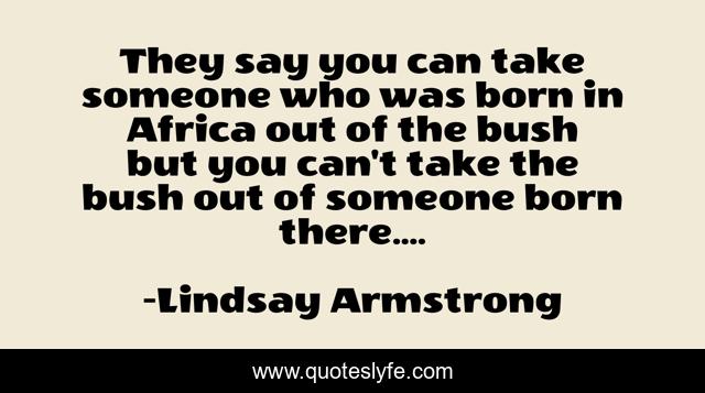 This page presents the quote "They say you can take someone who was born in Africa out of the bush but you can't take the bush out of someone born there....". Author of this quote is Lindsay Armstrong. .