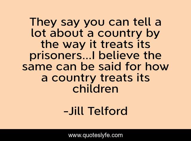 This page presents the quote "They say you can tell a lot about a country by the way it treats its prisoners…I believe the same can be said for how a country treats its children". Author of this quote is Jill Telford. This quote is about teaching, school, education, children, prison,.