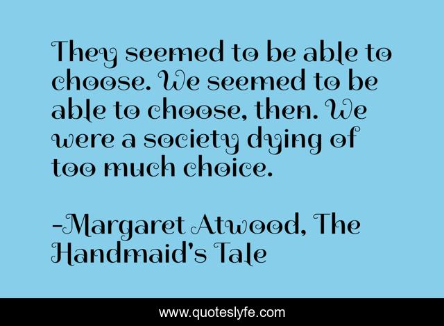 "Margaret Atwood, The Handmaid's Tale Quotes." Quoteslyfe.com, 2025. Sun. 07 Dec. 2025. <https://www.quoteslyfe.com/quote/They-seemed-to-be-able-to-choose-174674>.