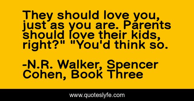 This page presents the quote "They should love you, just as you are. Parents should love their kids, right?" "You'd think so.". Author of this quote is N.R. Walker, Spencer Cohen, Book Three. This quote is about heartache, life, love, bad-parenting, lgbtq, abandonment, andrew, unfair, lgbt,.