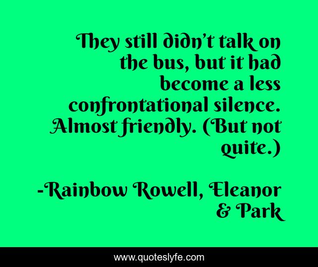 This page presents the quote "They still didn’t talk on the bus, but it had become a less confrontational silence. Almost friendly. (But not quite.)". Author of this quote is Rainbow Rowell, Eleanor & Park. This quote is about almost-friendly, silence,.