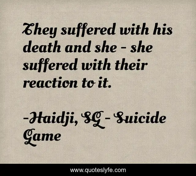 "Haidji, SG - Suicide Game Quotes." Quoteslyfe.com, 2025. Sat. 06 Dec. 2025. <https://www.quoteslyfe.com/quote/They-suffered-with-his-death-and-she-21417>.
