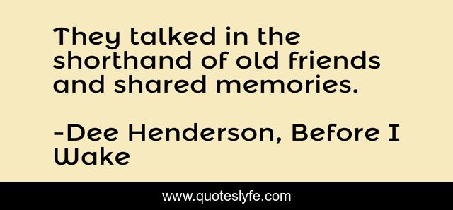 This page presents the quote "They talked in the shorthand of old friends and shared memories.". Author of this quote is Dee Henderson, Before I Wake. This quote is about old-friends, memories,.