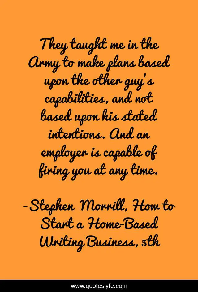"Stephen Morrill, How to Start a Home-Based Writing Business, 5th Quotes." Quoteslyfe.com, 2025. Fri. 05 Dec. 2025. <https://www.quoteslyfe.com/quote/They-taught-me-in-the-Army-to-197912>.