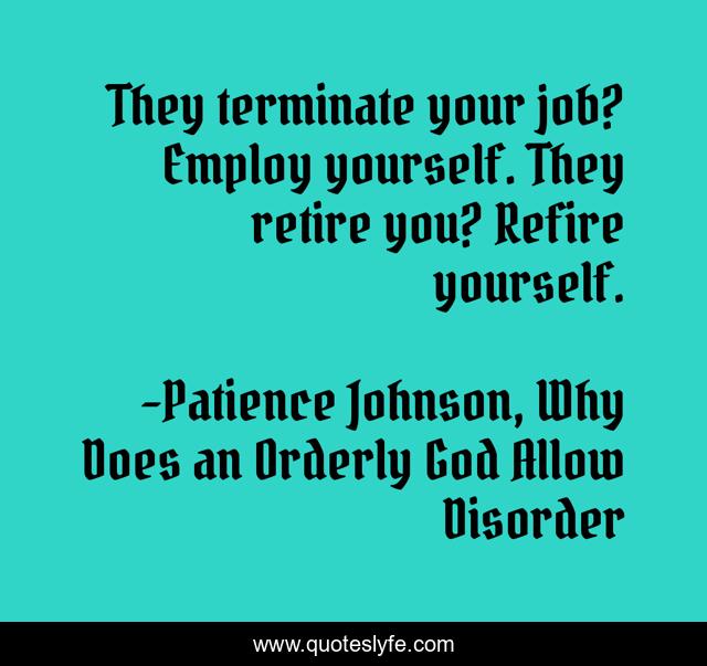 "Patience Johnson, Why Does an Orderly God Allow Disorder Quotes." Quoteslyfe.com, 2025. Sat. 06 Dec. 2025. <https://www.quoteslyfe.com/quote/They-terminate-your-job-Employ-yourself-They-50971>.