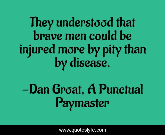 This page presents the quote "They understood that brave men could be injured more by pity than by disease.". Author of this quote is Dan Groat, A Punctual Paymaster. This quote is about pity, brave, disease, bravery,.