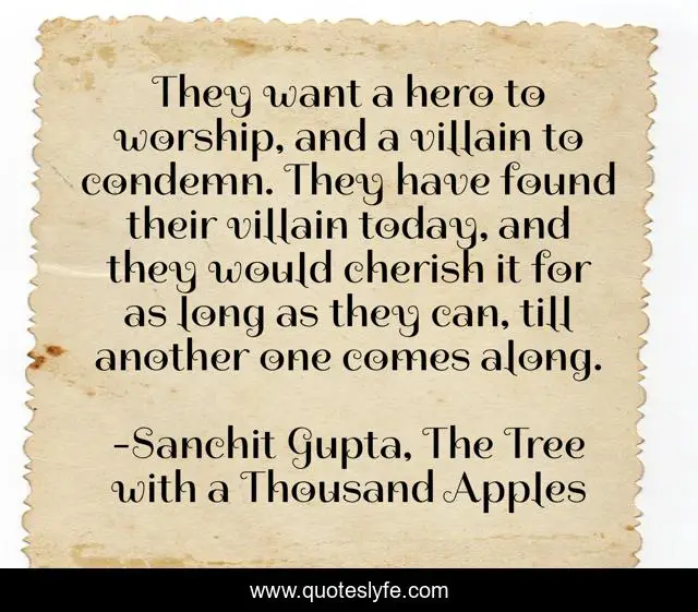 "Sanchit Gupta, The Tree with a Thousand Apples Quotes." Quoteslyfe.com, 2025. Mon. 08 Dec. 2025. <https://www.quoteslyfe.com/quote/They-want-a-hero-to-worship-and-163961>.