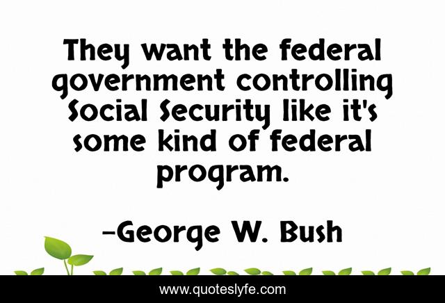 This page presents the quote "They want the federal government controlling Social Security like it's some kind of federal program.". Author of this quote is George W. Bush. .