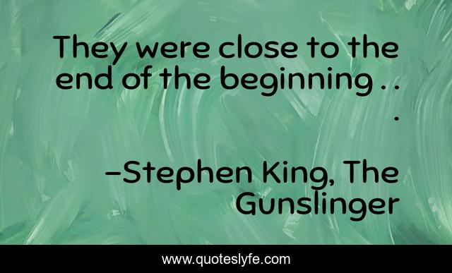 This page presents the quote "They were close to the end of the beginning . . .". Author of this quote is Stephen King, The Gunslinger. This quote is about gunslinger, deschain, dark-tower, jake, black, stephen-king, chambers, roland, man,.
