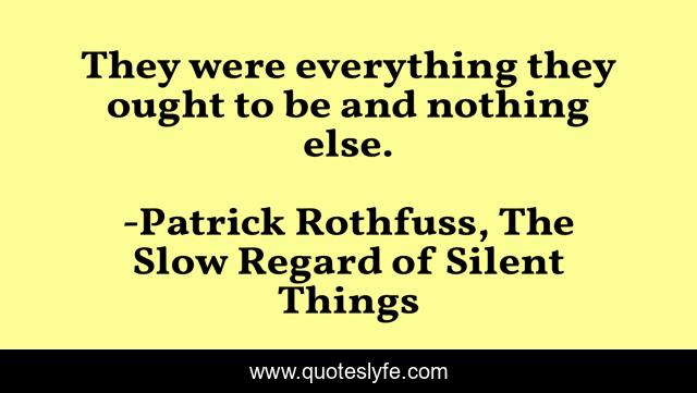 This page presents the quote "They were everything they ought to be and nothing else.". Author of this quote is Patrick Rothfuss, The Slow Regard of Silent Things. This quote is about nothing, everything, auri,.