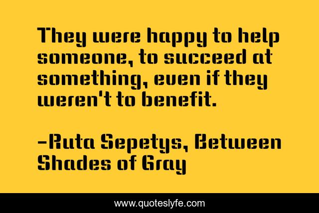 This page presents the quote "They were happy to help someone, to succeed at something, even if they weren't to benefit.". Author of this quote is Ruta Sepetys, Between Shades of Gray. .
