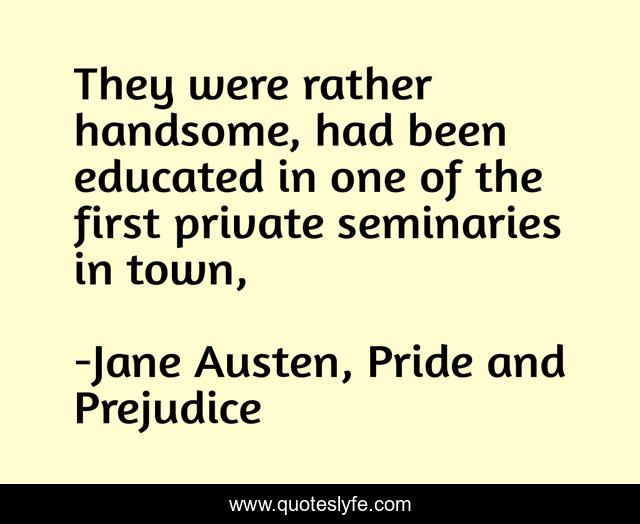 This page presents the quote "They were rather handsome, had been educated in one of the first private seminaries in town, ". Author of this quote is Jane Austen, Pride and Prejudice. .