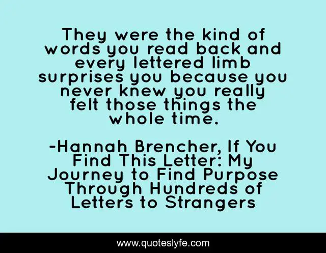 "Hannah Brencher, If You Find This Letter: My Journey to Find Purpose Through Hundreds of Letters to Strangers Quotes." Quoteslyfe.com, 2025. Sat. 06 Dec. 2025. <https://www.quoteslyfe.com/quote/They-were-the-kind-of-words-you-113088>.