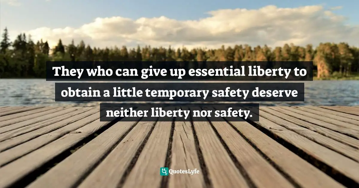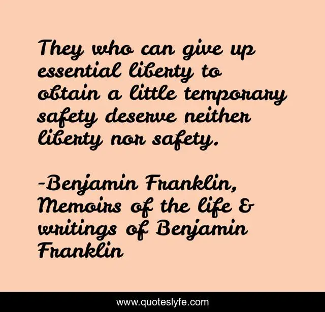 "Benjamin Franklin, Memoirs of the life & writings of Benjamin Franklin Quotes." Quoteslyfe.com, 2025. Mon. 29 Dec. 2025. <https://www.quoteslyfe.com/quote/They-who-can-give-up-essential-liberty-54217>.