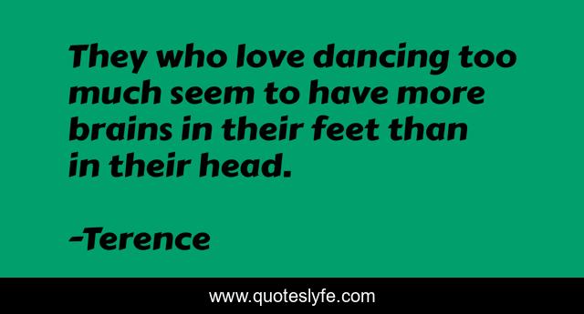 This page presents the quote "They who love dancing too much seem to have more brains in their feet than in their head.". Author of this quote is Terence. .