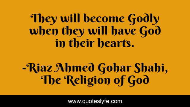This page presents the quote "They will become Godly when they will have God in their hearts.". Author of this quote is Riaz Ahmed Gohar Shahi, The Religion of God. This quote is about faith, food-for-thought, pakistan, godly, sufi, heart, spirituality, sufism, religion,.