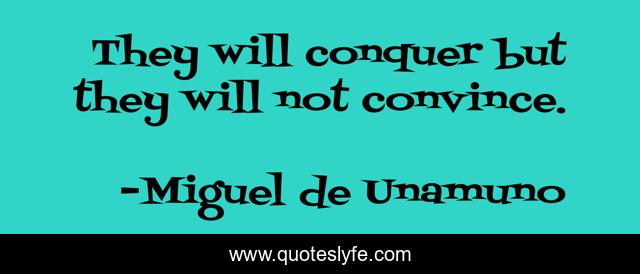 This page presents the quote "They will conquer but they will not convince.". Author of this quote is Miguel de Unamuno. .