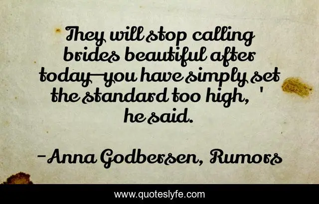 This page presents the quote "They will stop calling brides beautiful after today—you have simply set the standard too high, ' he said.". Author of this quote is Anna Godbersen, Rumors. This quote is about bride, beauty, compliment,.