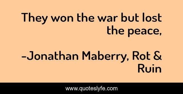 This page presents the quote "They won the war but lost the peace, ". Author of this quote is Jonathan Maberry, Rot & Ruin. This quote is about nix, chong, benny, war,.