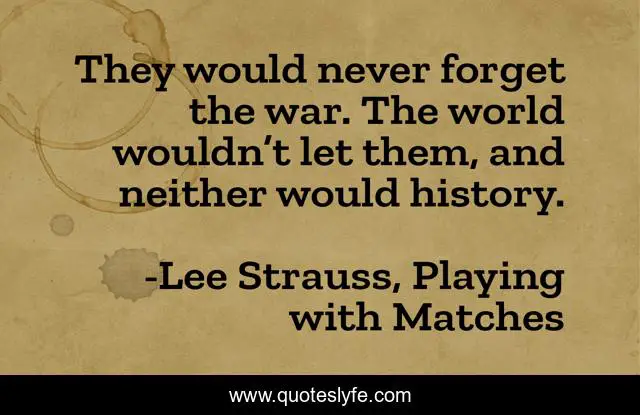 "Lee Strauss, Playing with Matches Quotes." Quoteslyfe.com, 2025. Sat. 06 Dec. 2025. <https://www.quoteslyfe.com/quote/They-would-never-forget-the-war-The-224794>.