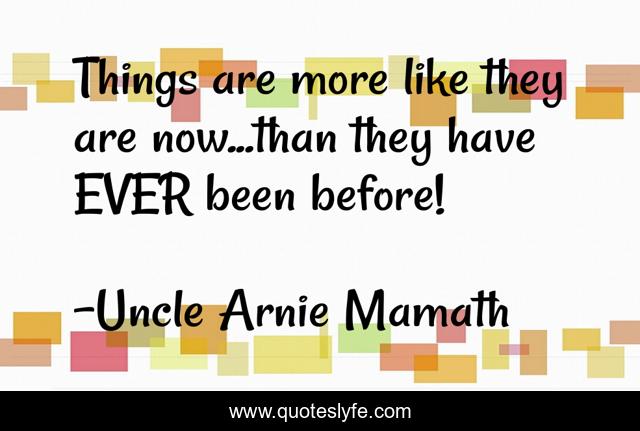 "Uncle Arnie Mamath Quotes." Quoteslyfe.com, 2025. Sun. 07 Dec. 2025. <https://www.quoteslyfe.com/quote/Things-are-more-like-they-are-now-221326>.