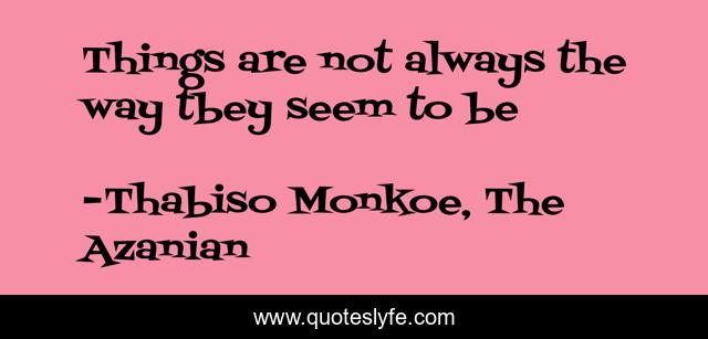 This page presents the quote "Things are not always the way tbey seem to be". Author of this quote is Thabiso Monkoe, The Azanian. .
