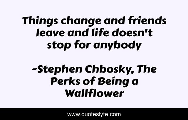 "Stephen Chbosky, The Perks of Being a Wallflower Quotes." Quoteslyfe.com, 2025. Mon. 08 Dec. 2025. <https://www.quoteslyfe.com/quote/Things-change-and-friends-leave-and-life-126993>.