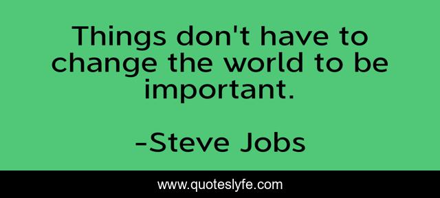 This page presents the quote "Things don't have to change the world to be important.". Author of this quote is Steve Jobs. This quote is about world, change the world,.