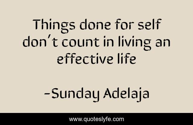 This page presents the quote "Things done for self don’t count in living an effective life". Author of this quote is Sunday Adelaja. This quote is about love, people, money, principles, selflessness, employment, worship, impact, living,.